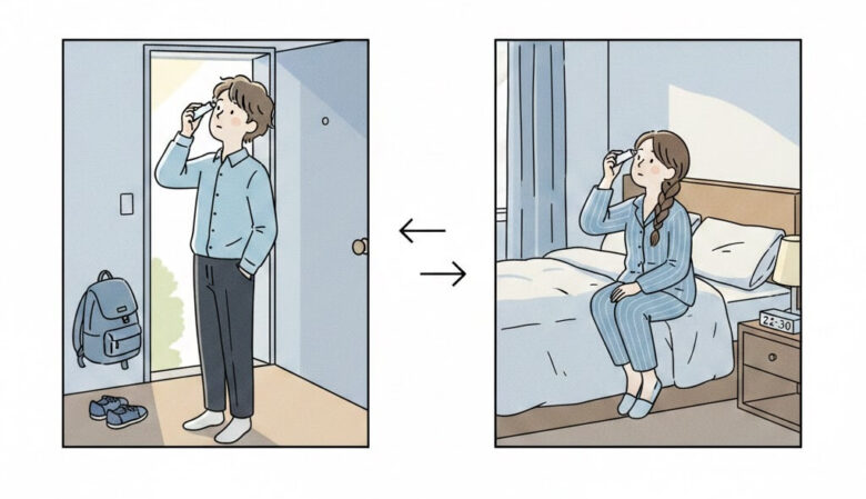 ただ私は養潤水を使うのが初めてだったので1日2回、以下のタイミングで点眼しました。